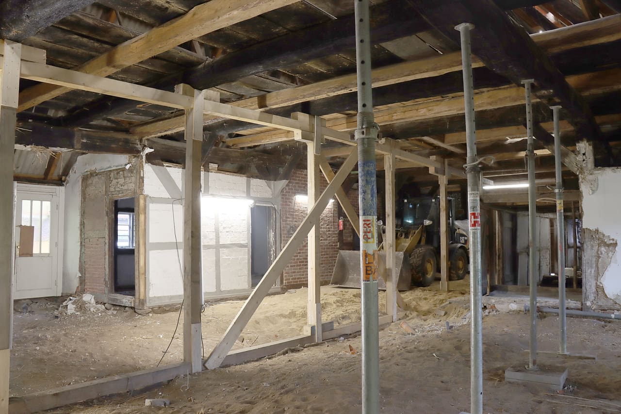 Parallel laufen Planungen für Raumgestaltung, Versorgungsleitungen für Strom und Wasser sowie die Suche nach historischen Baustoffen. Für die Instandsetzung werden Eichenholz und historischer Klinker benötigt.