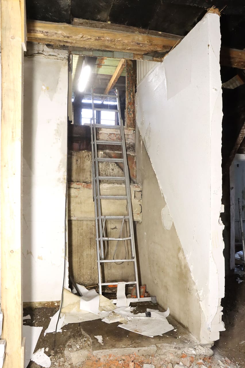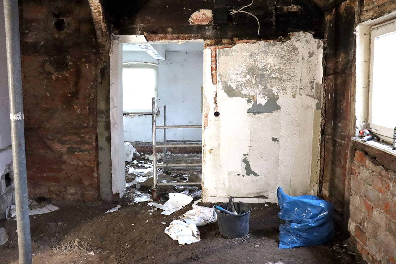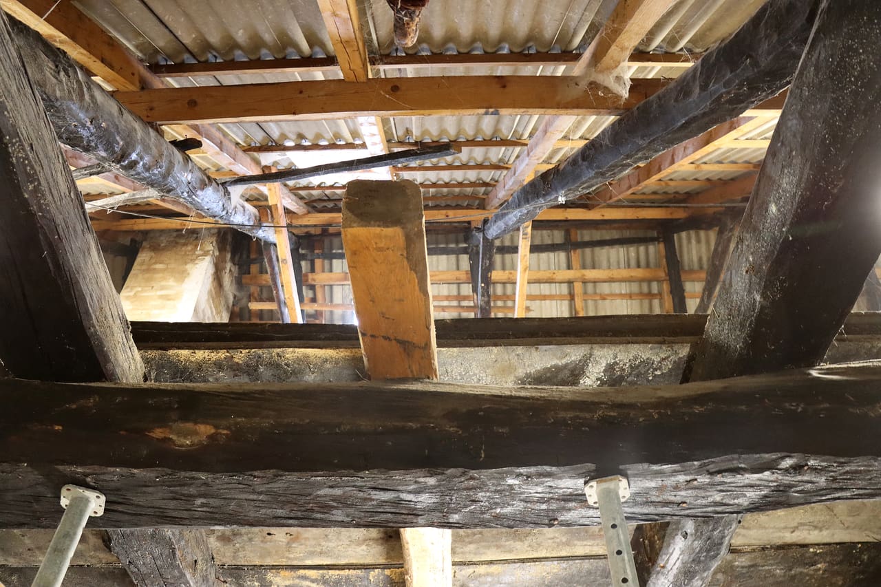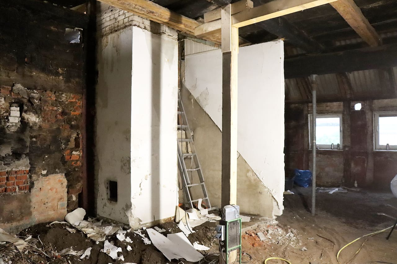 Die komplexe Dachkonstruktion und die Veränderungen der Lasten erfordern weitere Prüfungen durch den Statiker. Erst nach Klärung offener Fragen kann der Umbau im Haus fortgesetzt werden.