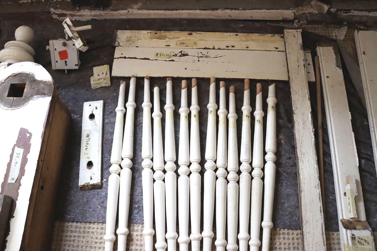 Neben der Treppe wurden alte Tapeten mit floralen Mustern sichtbar. An der Tür zur Bibliothek ist eine grüne Bordüre mit rotem Rand und goldener Blüte gefunden worden. Die genaue Datierung dieser Dekore steht noch aus.